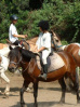 Mise en selle, découverte des disciplines équestres (voltige, saut, tir à l'arc à cheval, dressage) en fonction des participants